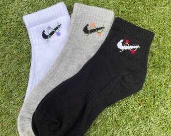 Floral nikes | Etsy nike embroidered socks