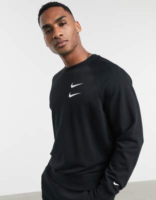 Nike Swoosh logo crew neck sweat in nike swoosh logo crew neck sweat in black
