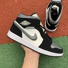 NIKE AIR JORDAN 1 MID SATIN GREY TOE air jordan 1 satin grey