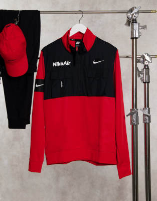 Nike Air half-zip pull-on fleece in red nike air half zip pullover